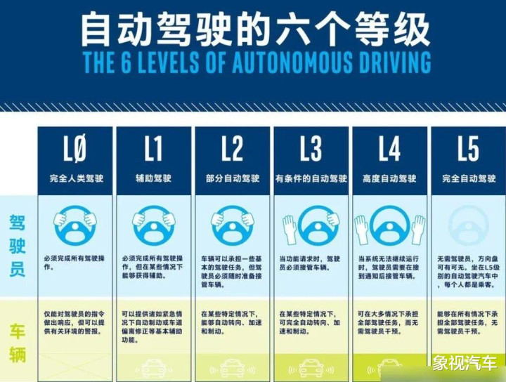 L0至L2级三个等级属于“辅助驾驶”,人类驾驶员是驾控主角和责任主体,驾驶系统只是辅助角色。
